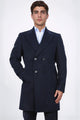 kruvaze sivri yaka yün ve kaşmir karışımlı lacivert kaban