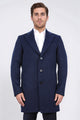 üç düğmeli mono yaka yün ve kaşmir karışımlı lacivert kaban